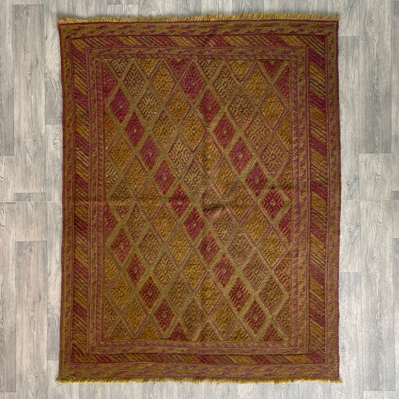 The weaving tradition was passed down through generations of women, using techniques shaped by nomadic life and local resources. Mushwani rugs are typically made with hand-spun sheep’s wool, with the pile and the foundation both being wool. The rugs are woven using the asymmetrical (Persian) knot at a medium knot density, providing longevity with a slightly rustic texture.